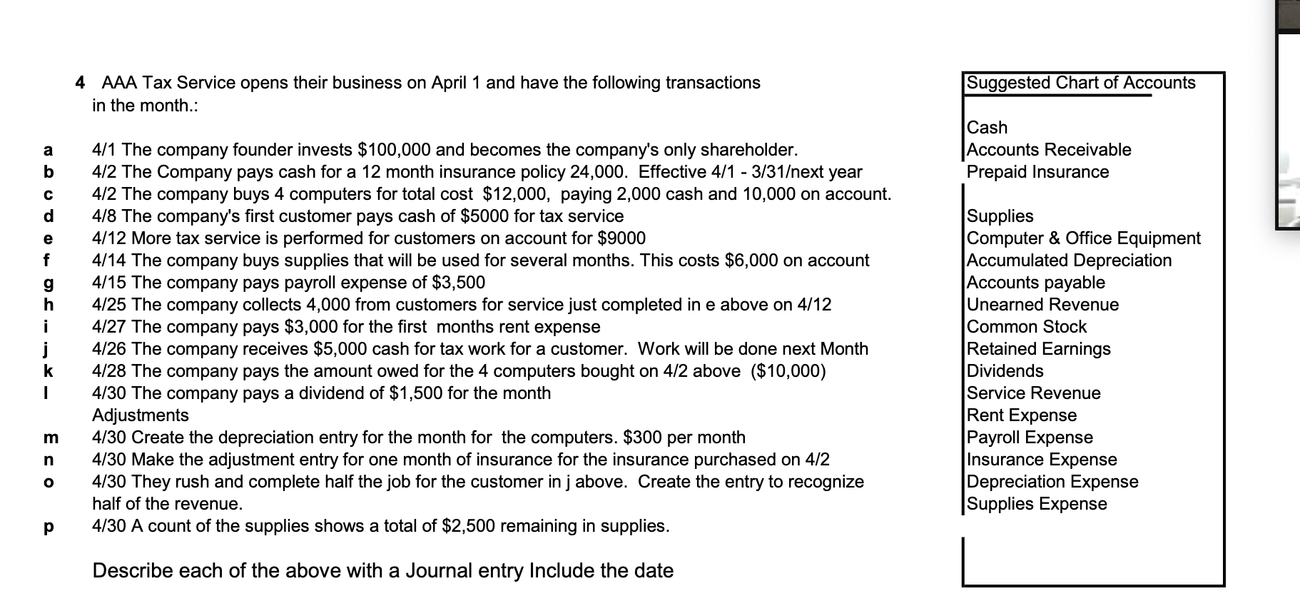 Solved 4 Aaa Tax Service Opens Their Business On April 1 And Chegg Com